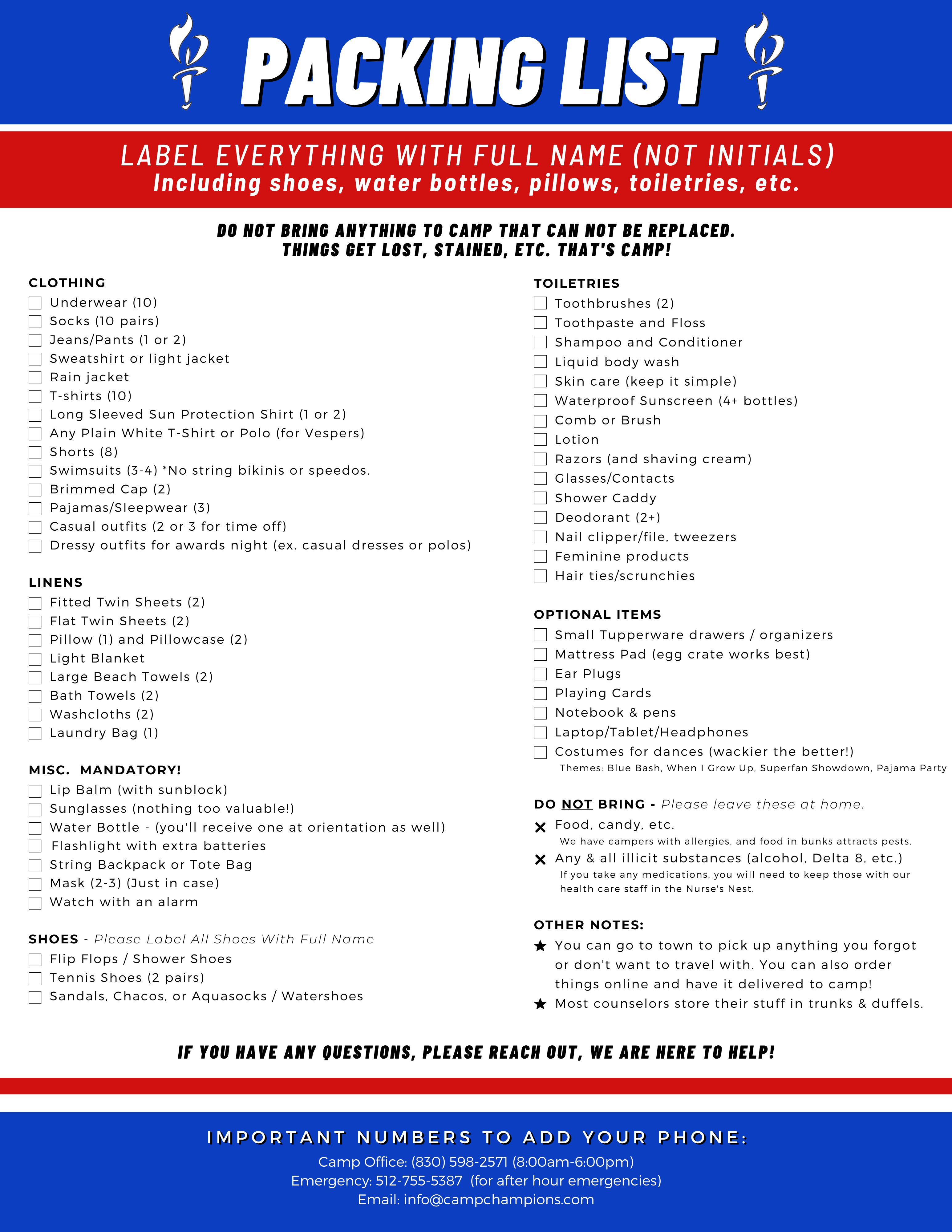Pre-Camp Info for Summer 2025